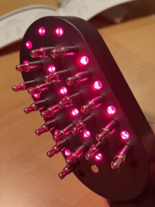 これで髪をとかします。LLLTとEMSが統合されたクシです!!